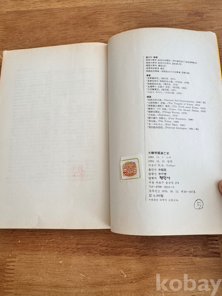 [한국근대사, 대한제국] 호머 베절릴 헐버트 저, 신복룡 옮김, <대한제국 멸망사>, 평민사, 1981, p. 453, 상태 중급(사진참조)