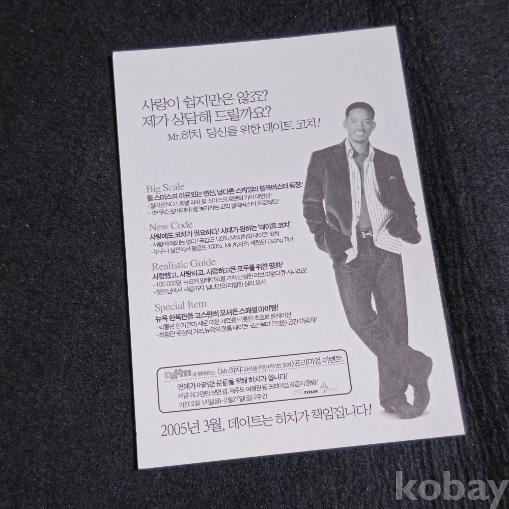(천원경매)(((영화자료/영화전단카드/엽서))) 영화 Mr. 히치 - 당신을 위한 데이트 코치 카드 (2005)