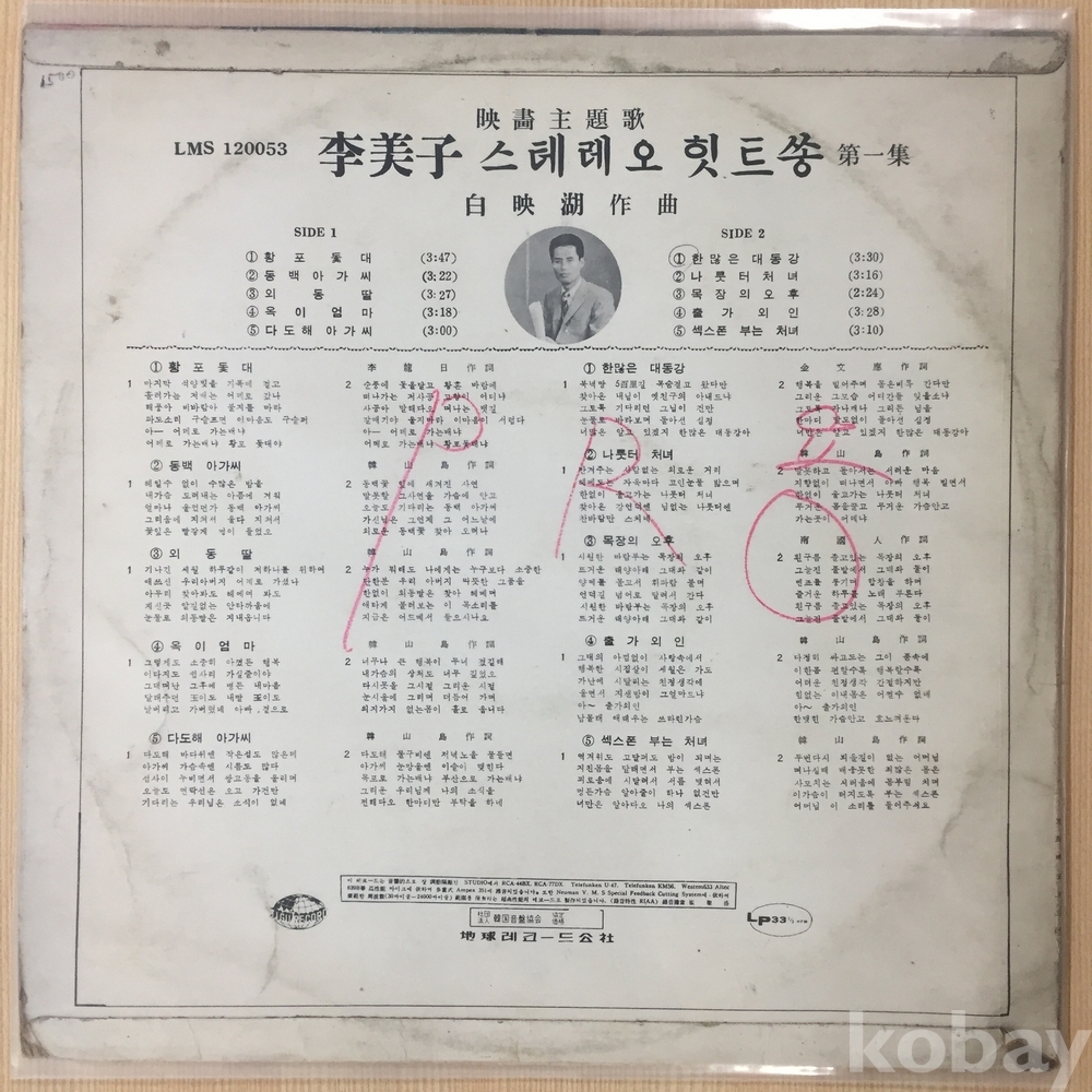 . 가요음반 대부분은 휘어짐이나 손상을 방지하기 위해 무지싱글자킷을 하나 더 사용하여 보관되었던 음반들입니다.