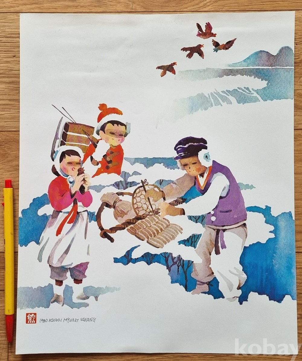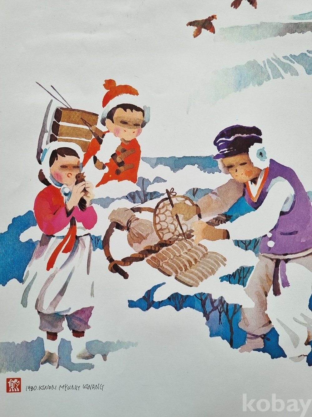 K-15 / 풍속화. 동화 그림삽화 (1979년 권명광 서명 낙관) 수채화풍 (인쇄본)
