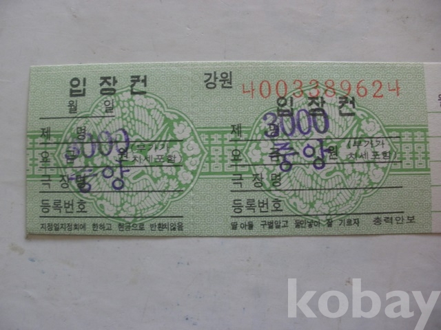강원 중앙극장 입장권 (딸 아들 구별말고 둘만 낳아 잘 기르자, 총력안보)