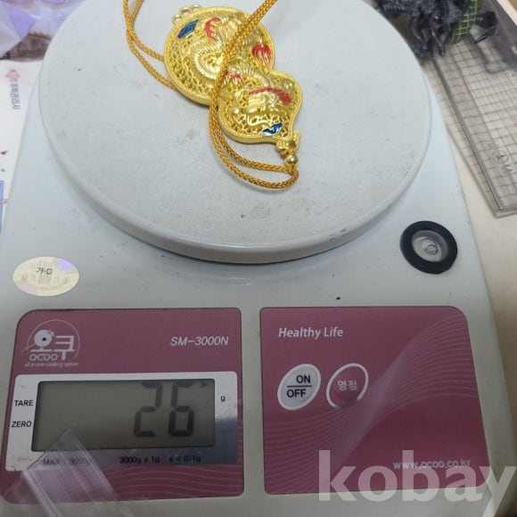 금빛의 동제품에 칠보 기벞으로 장식한 목걸이 형 노리개입니다. 새제품으로 다양하게 활용할수 있습니다