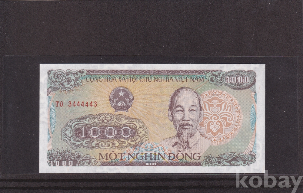 *베트남 특이번호 지폐 모음展* 1988년 1000동 TO 3444443 - 5봉 레이더 미사용 지폐