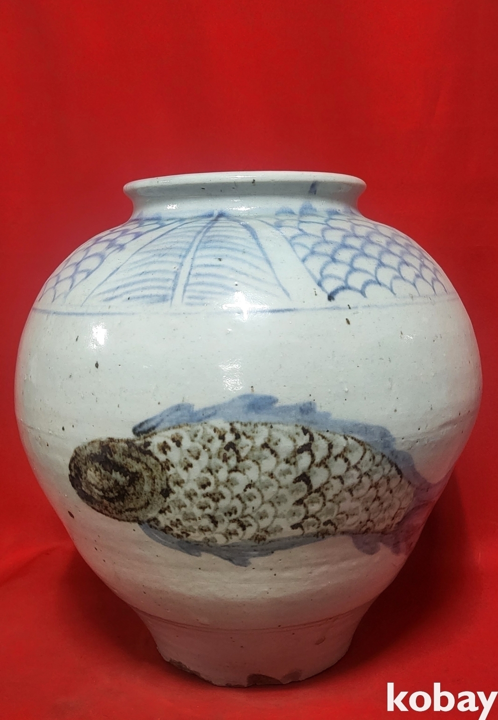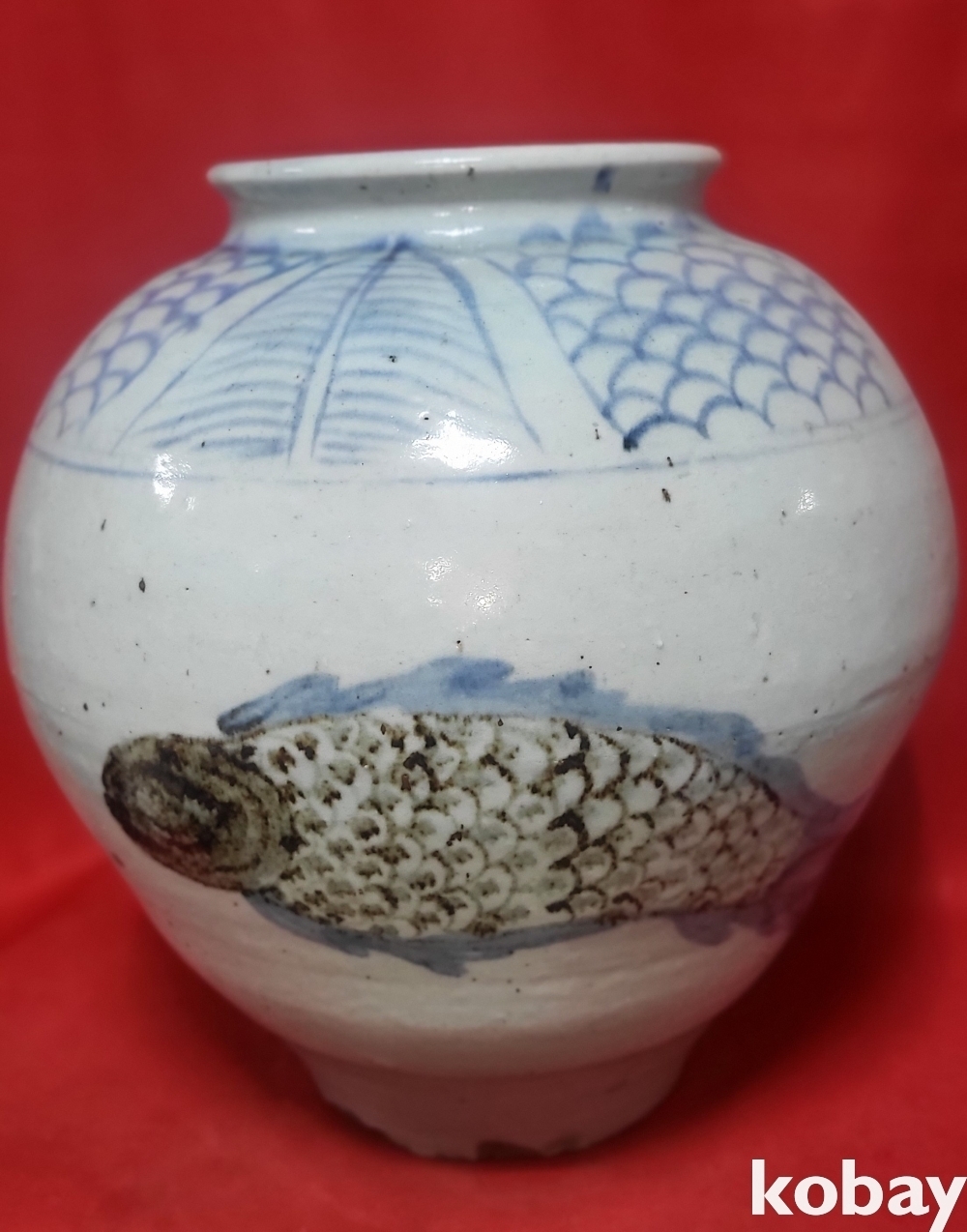 양면에 큰 물고기가 철화 도안으로 있습니다,