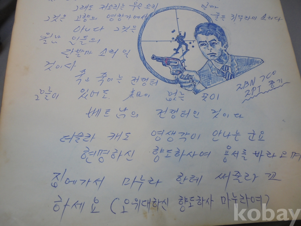죽엄의공포를 이겨내고자 했던 흔적도 보여지는 월남파병 용사의 추억록 입니다.