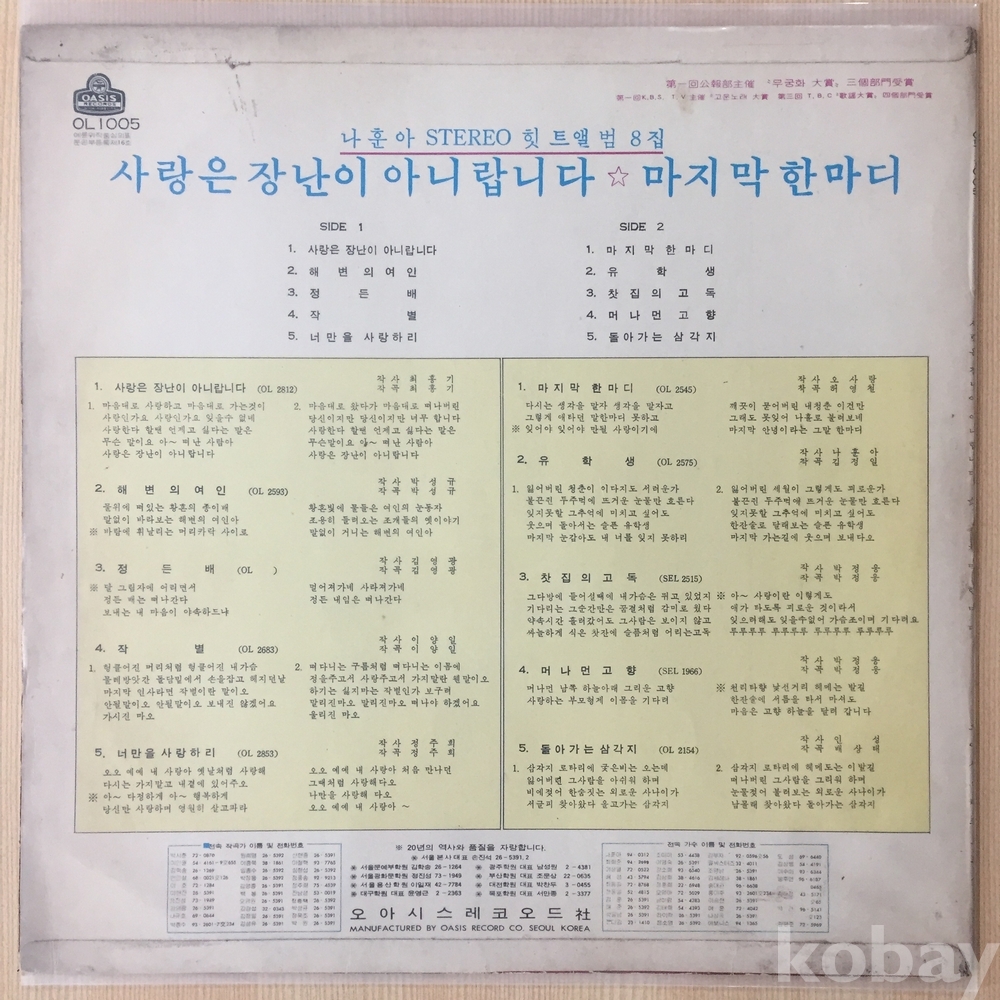 ⊙ 1971년 / 오아시스레코드 - OL 1005