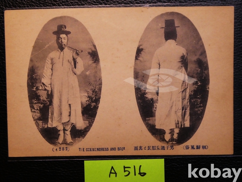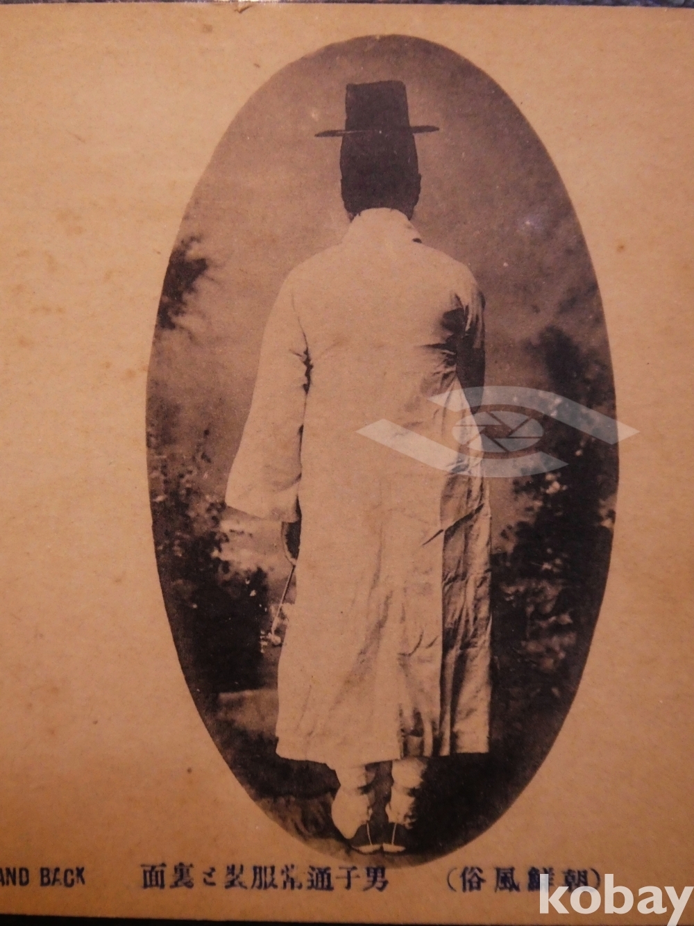 ▣근대한국엽서(진본): [조선풍속] 담배 피는 조선인 남성 복장의 앞뒷 모습/1매/역사자료/일제강점기 사진엽서, 그림엽서, 회엽서. A516