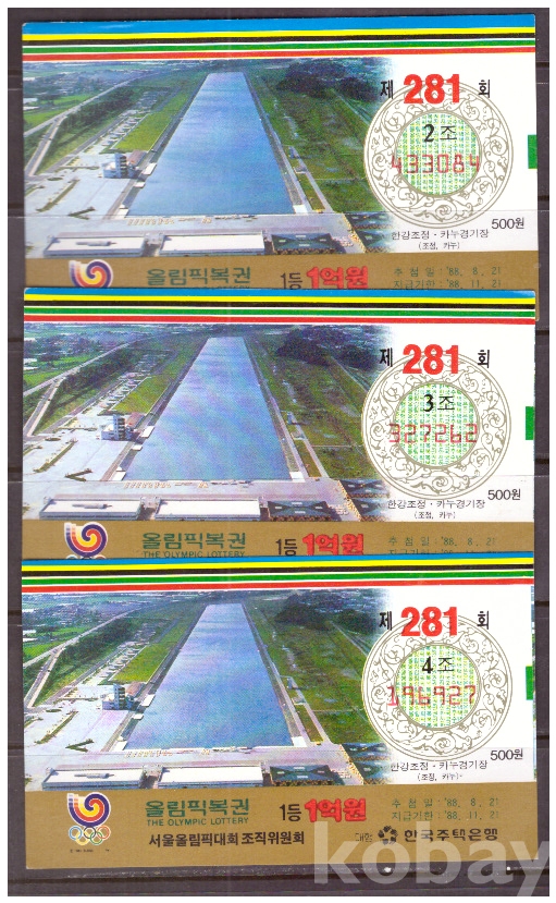 (서울올림픽) 1988 서울올림픽복권 제281회 2,3,4조 한강조정-카누경기장(조정, 카누)