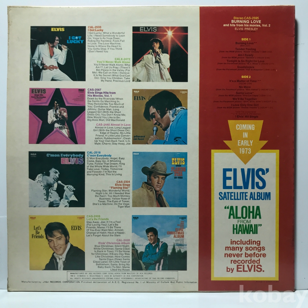 LP 30,940-138 Elvis Presley – Burning Love (Vol.2) . 자켓 EX 알판 EX 73 년 국내반