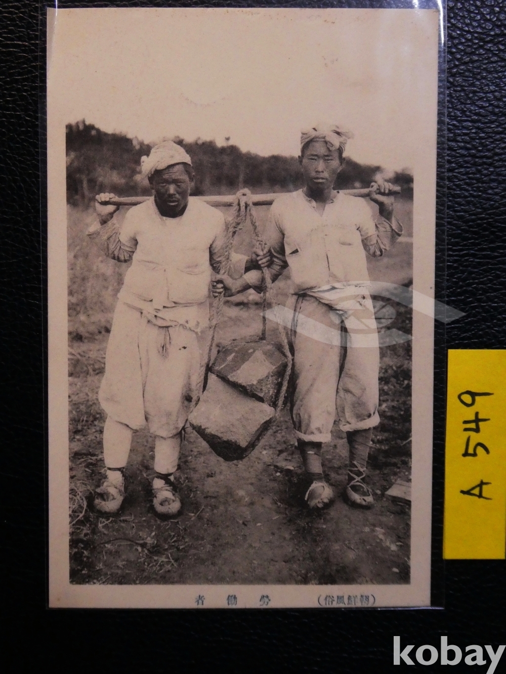 ▣근대한국엽서(진본): [조선풍속] 돌을 나르는 조선인 노동자의 모습/1매/역사자료/일제강점기 사진엽서, 그림엽서, 회엽서. A549