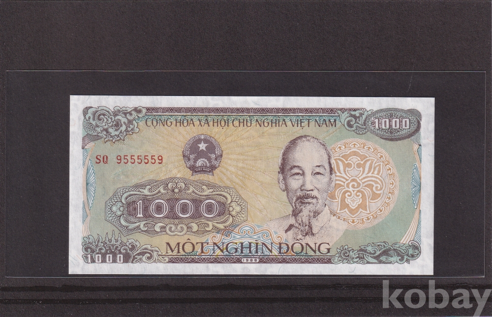 *베트남 특이번호 지폐 모음展* 1988년 1000동 SQ 9555559 - 5봉 레이더 미사용 지폐