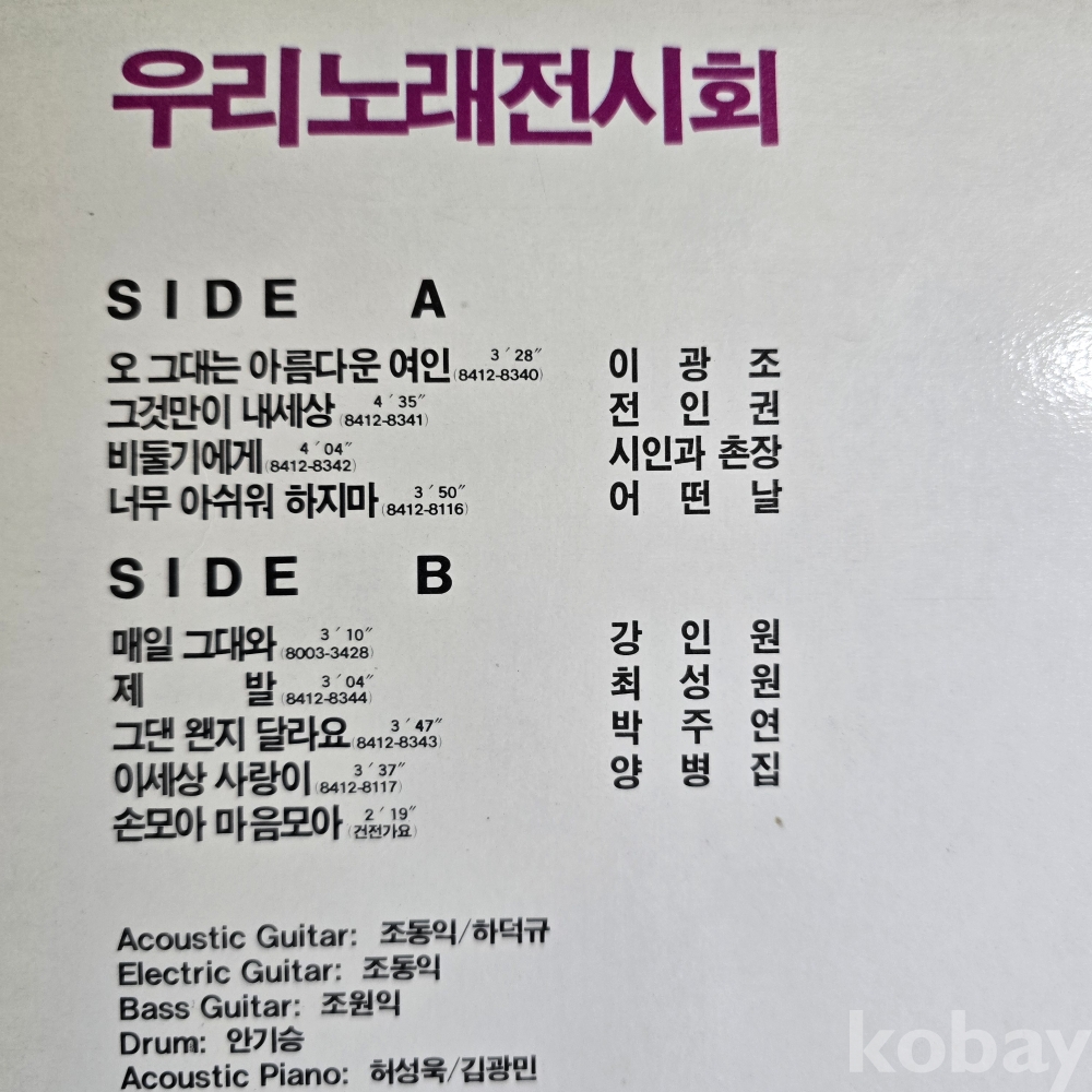 | 자켓상태 | VG : 주름, 접힘, 모서리 찢김 다수 | 음반상태 | VG : 생활 기스 다수, 가벼운 노이즈 존재 | 발매정보 | 초반 | 가사지여부 | 유 |