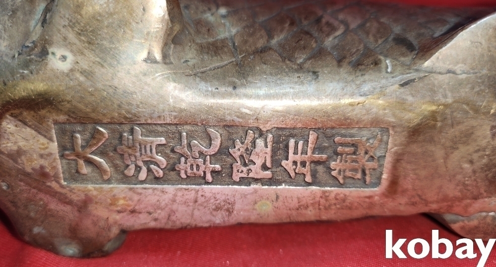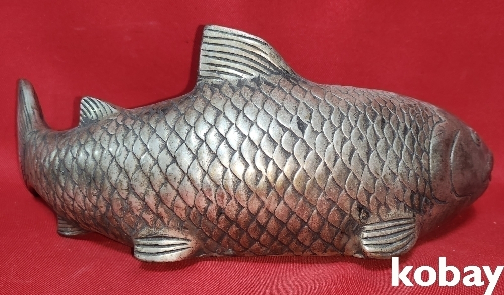 대청건륭연제 관지 백동으로 만든 물고기 문양 장식품입니다,