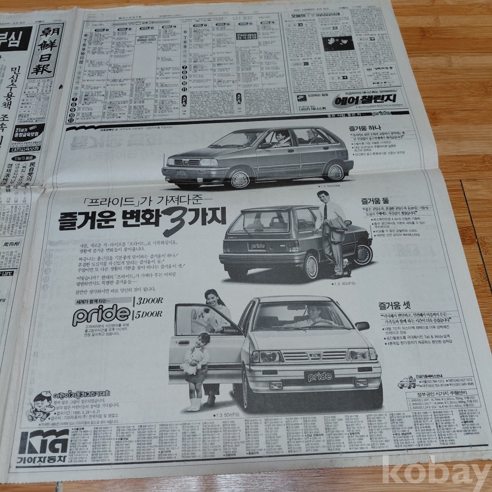 기아자동차 프라이드 광고 조선일보 90년4월5일 올려드립니다