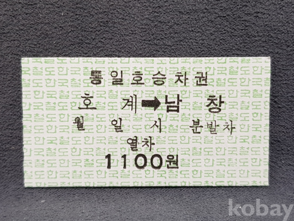 - 미사용 통일호 승차권 " 호계 ▶ 남창 " 1100원