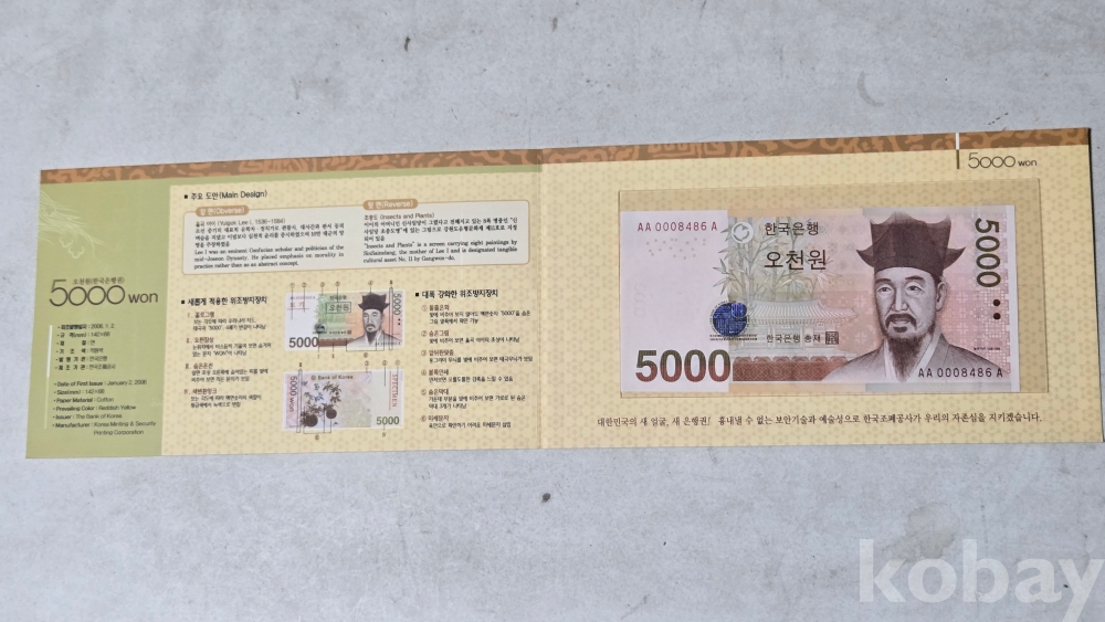 1만매 한정 경매첩=한정 공급한 빠른번호 8486번 경매첩 / 초판 오천원(5000원)권
