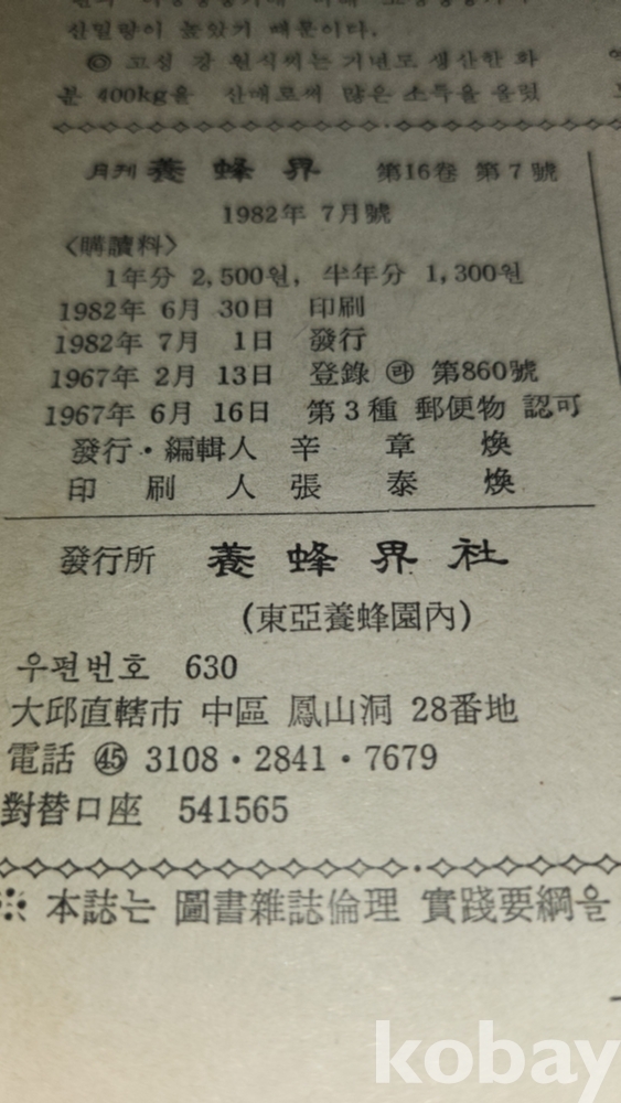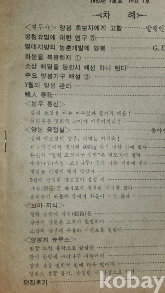1982년에 발행된 양봉계(養蜂界) 양봉계사 발행 7 월호입니다,