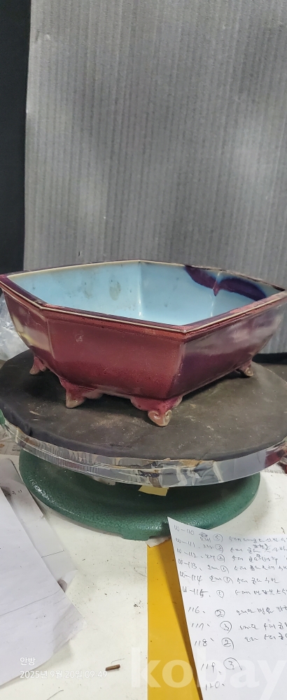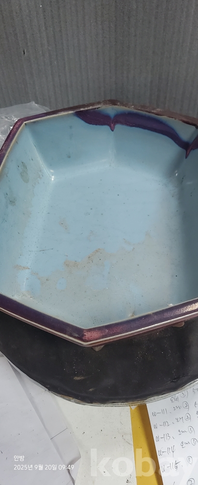 w-119.오래된 5대도자기 균요비문이있는큰수반