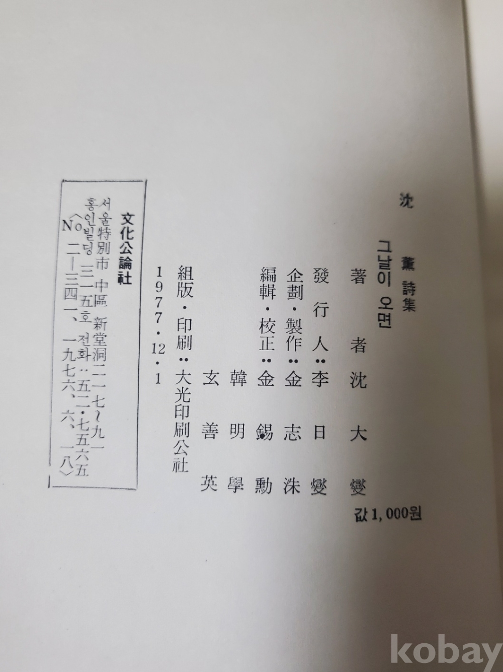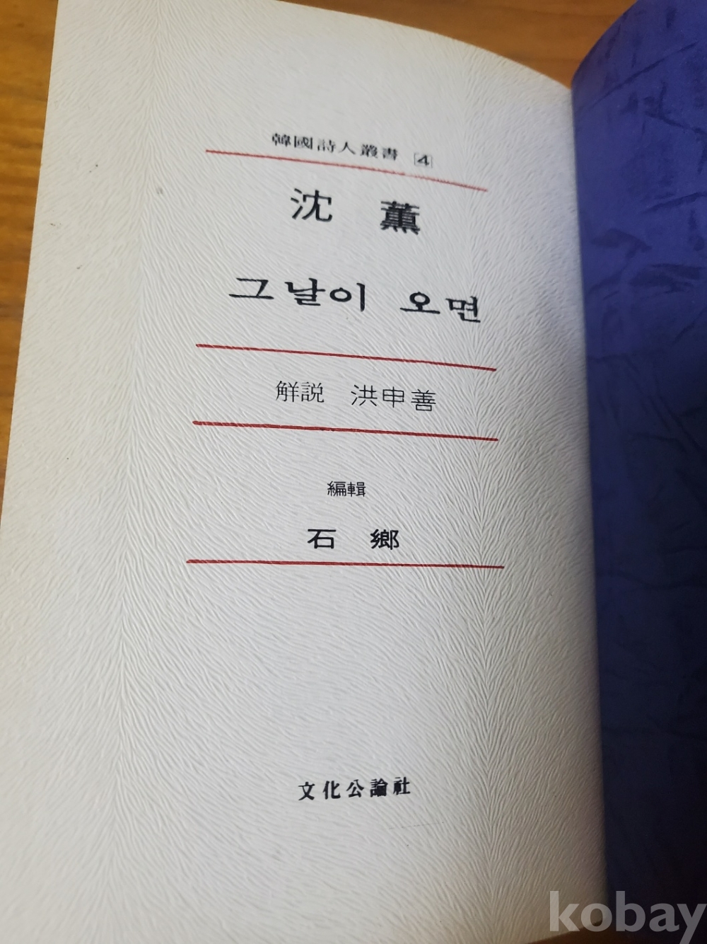1. 그날이 오면, 심훈, 문화공론사, 1977년, 104쪽, 상태 상, 사진 참조