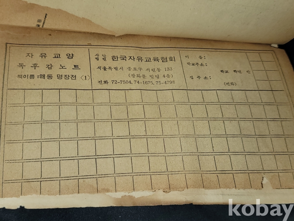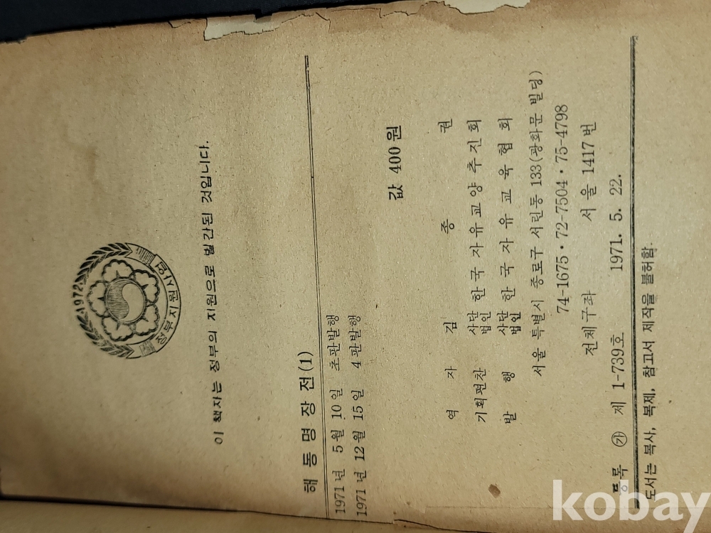 빈티지 세월 감이 느껴지는 1971년 발행 해동명장전 (1) 고서적입니다.