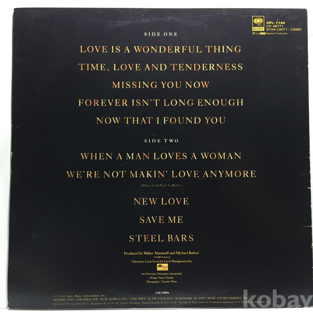 LP 350-84 Michael Bolton - Love Is A Wonderful Thing 자켓 EX+ 알판 EX+ 91 년 국내반