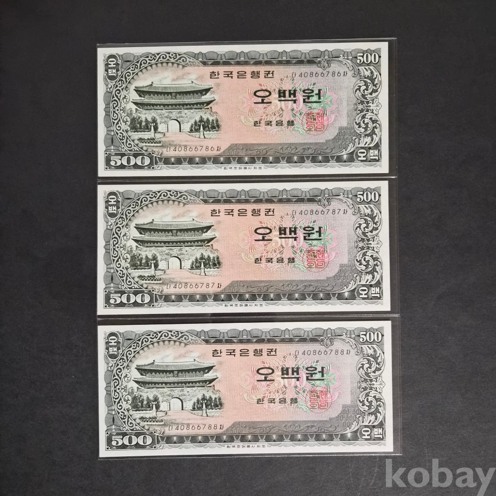 [근대사 화폐 기획전] 한국은행권 남대문 오백원 미사용 연번호 3매 일괄