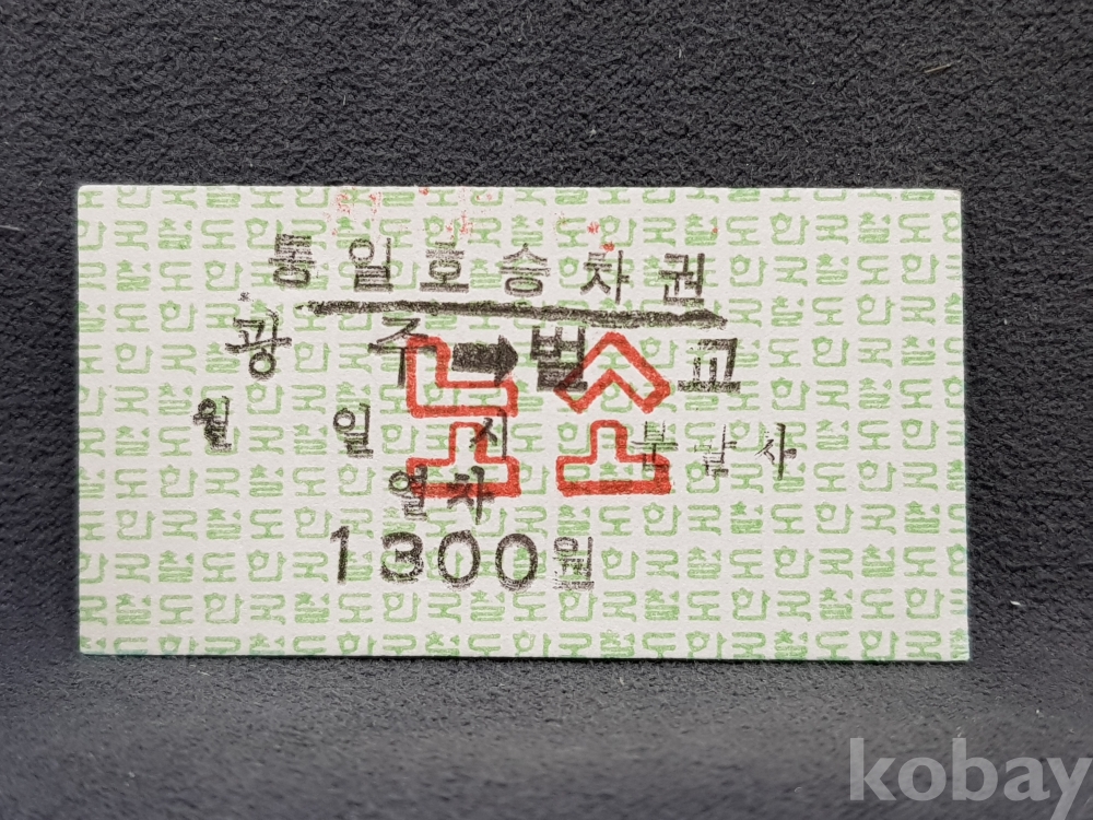 - 미사용 통일호 승차권 노소 " 광주 ▶ 벌교 " 1300원