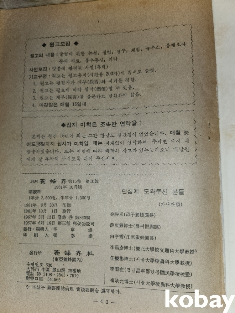 1981년에 발행된 양봉계(養蜂界) 양봉계사 발행 10월호입니다,