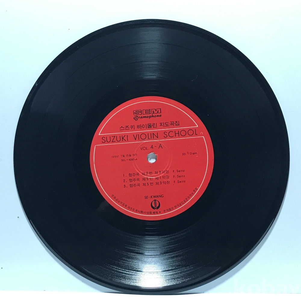 8인치 LP 83,640-145 스즈키 바이올린 지도곡집 Vol 4 협주곡 제2번 제3악장 . 자켓 無 알판 VG+ 78년 국내반