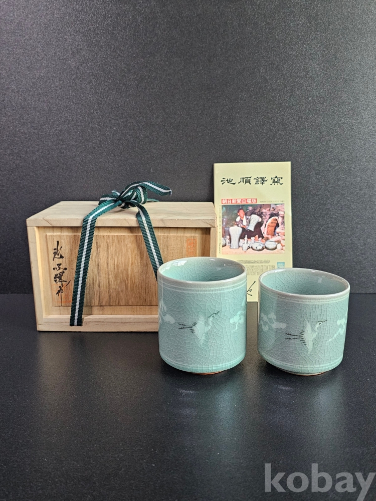 명칭 : 도암 지순탁 청자상감운학문부부잔