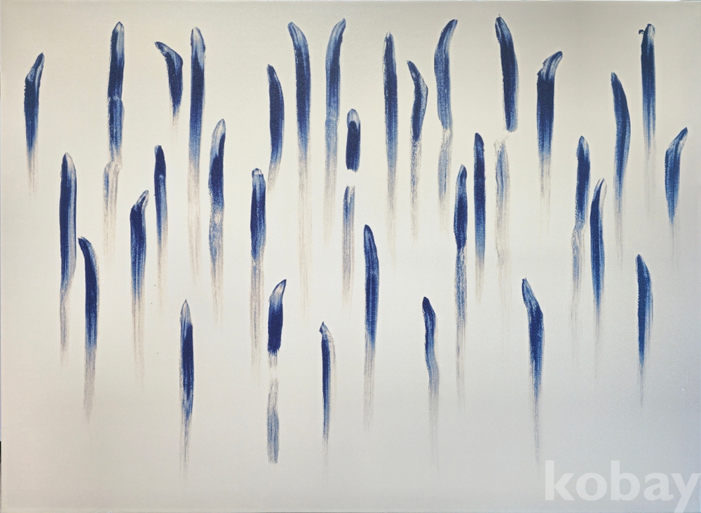 화면 상단에서 하단으로 반복적으로 내려오는 수직의 선은 작가가 한 번의 행위에 집중해 붓을 내리며 남긴 흔적으로, 행위와 시간, 물질과 정신의 관계를 사유하게 합니다.