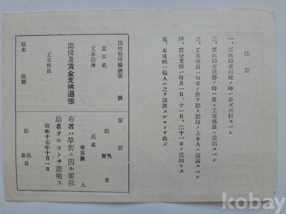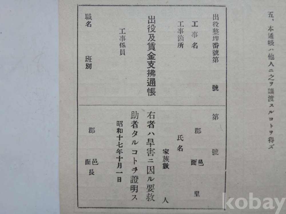 한해 구호자 증명, 출역 및 임금지불통장 (일제강점기)