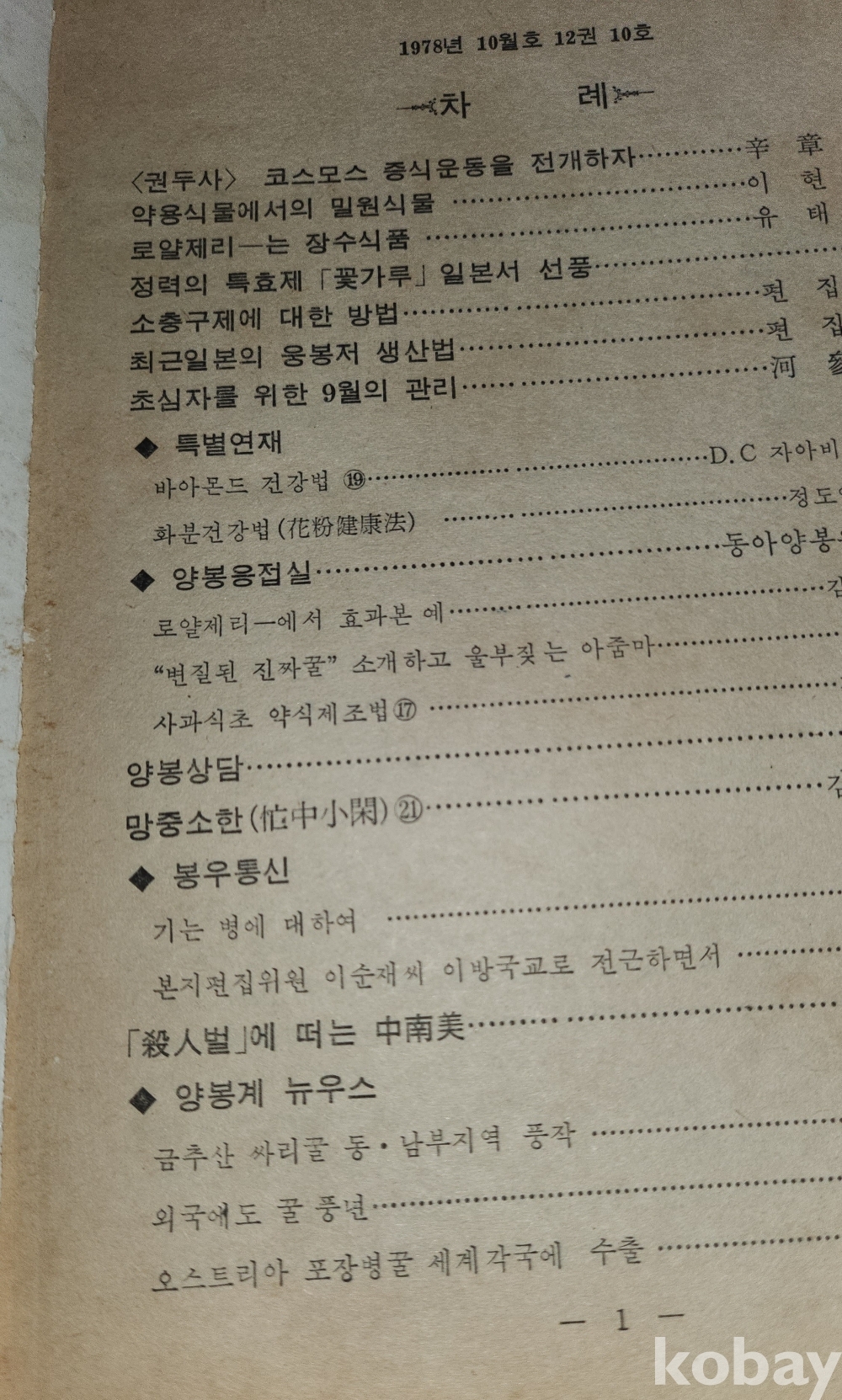 1978 년에 발행된 양봉계(養蜂界) 양봉계사 발행 10 월호입니다,