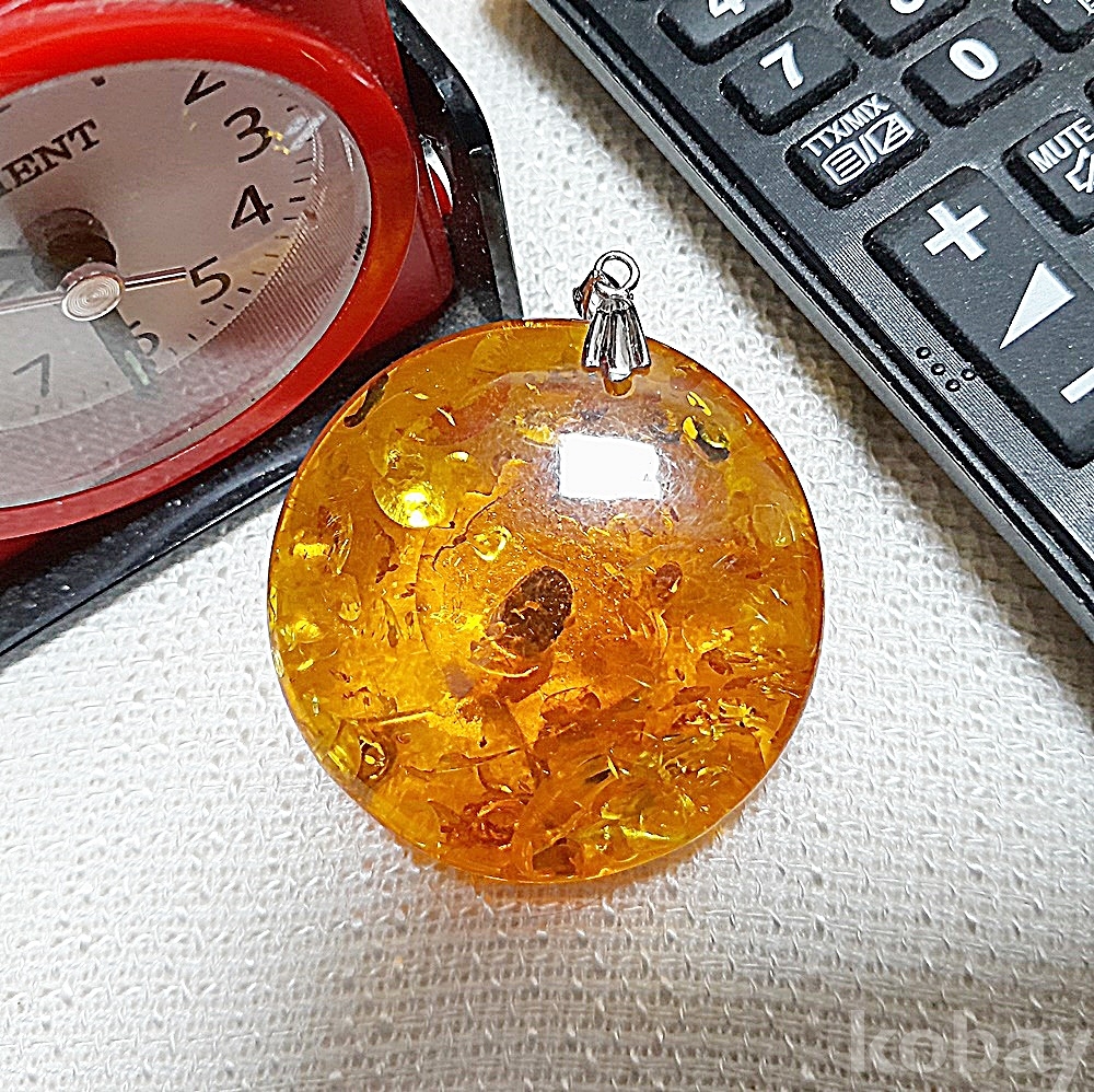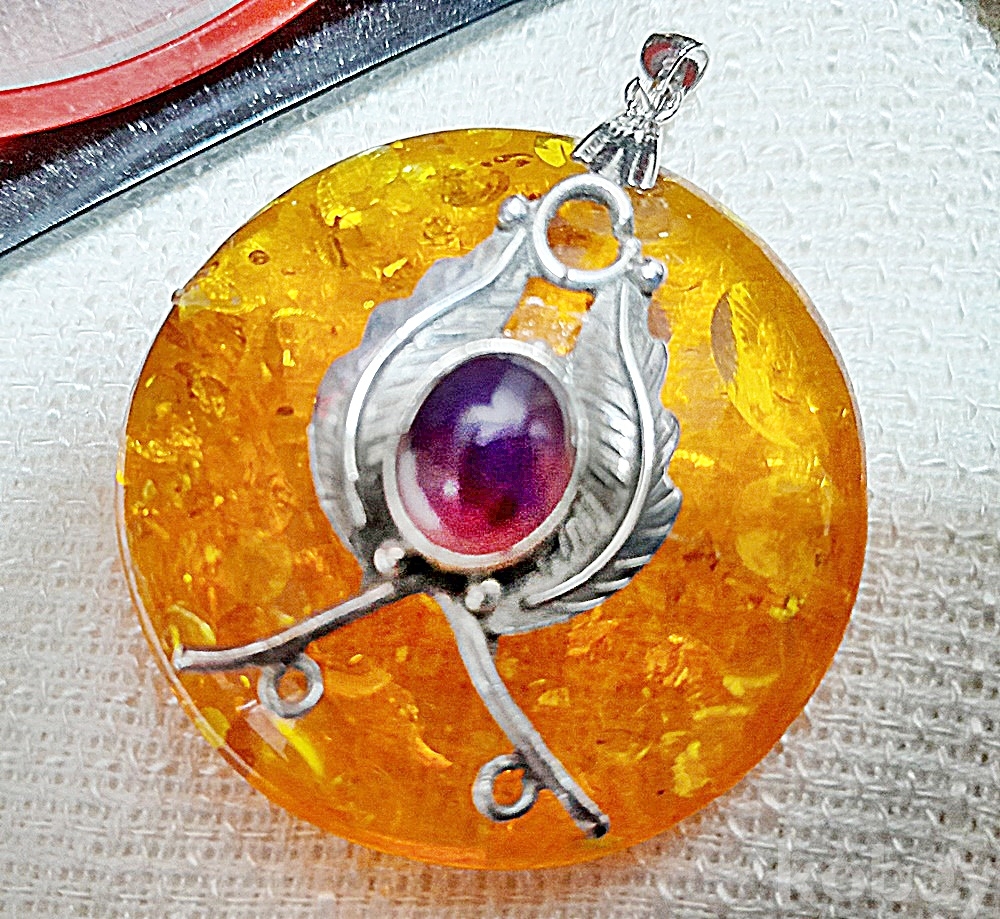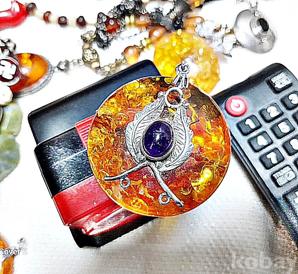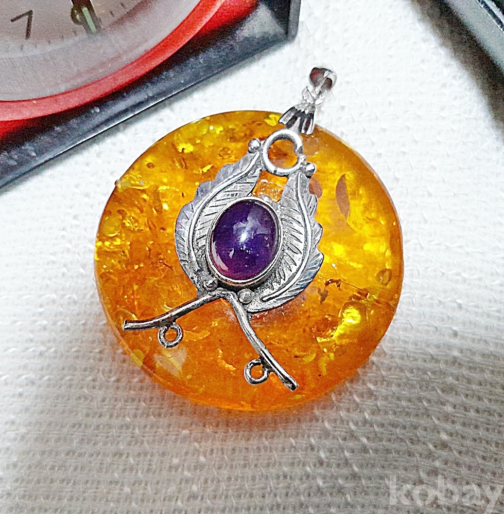 A급 천연자수정 호박 실버 대형펜던트
