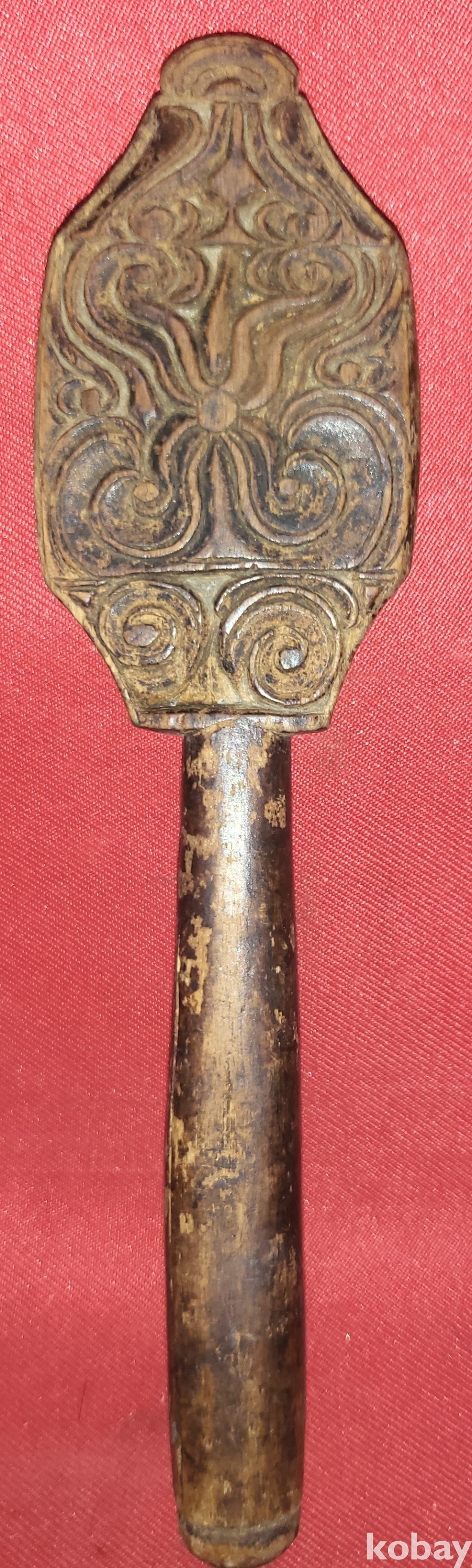구한말 연대 갖춘 최고급 나무에 장식된 꽃 문양 양면 떡살입니다,