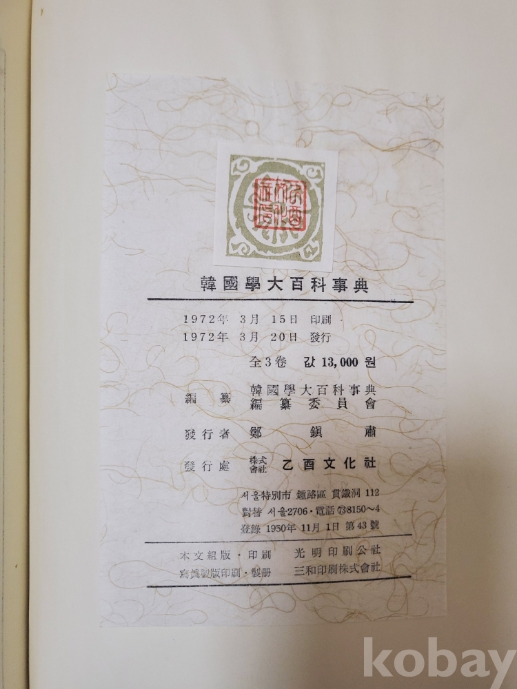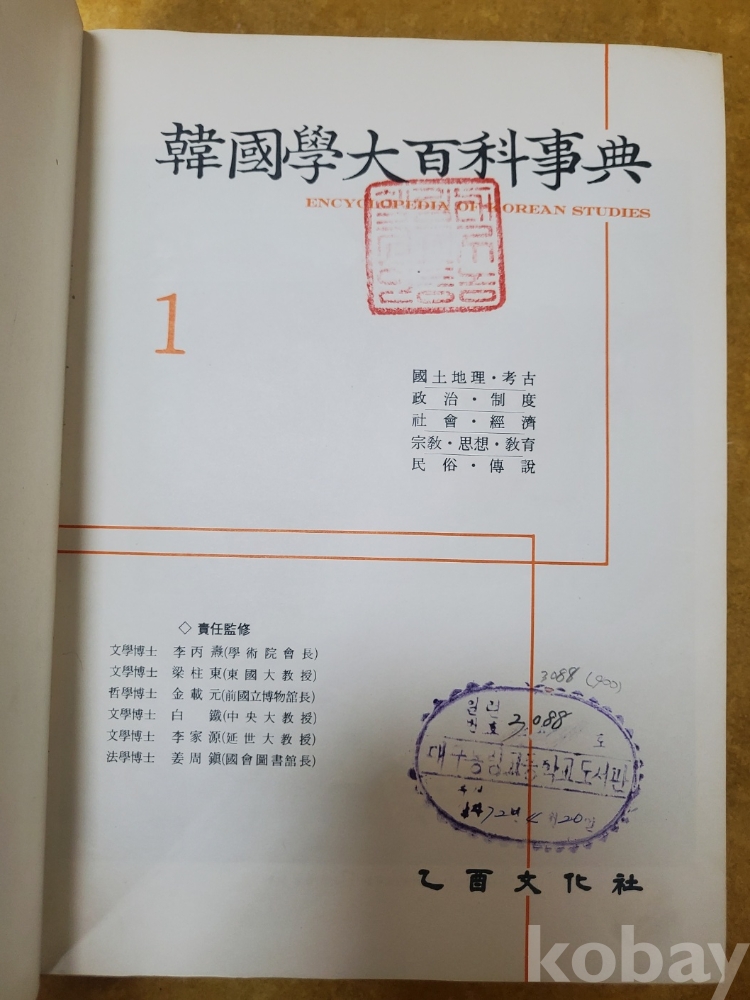 1. 한국학대백과사전 전3권, 을유문화사, 1972년, 사진 참조