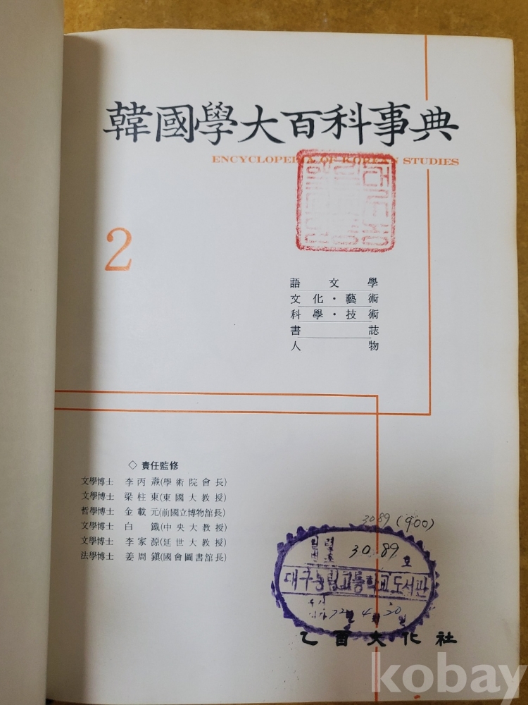 4. 한국학대배과사전 2(765쪽) : 어문학 / 문화 / 예술 / 과학 / 기술 / 서지 / 인물