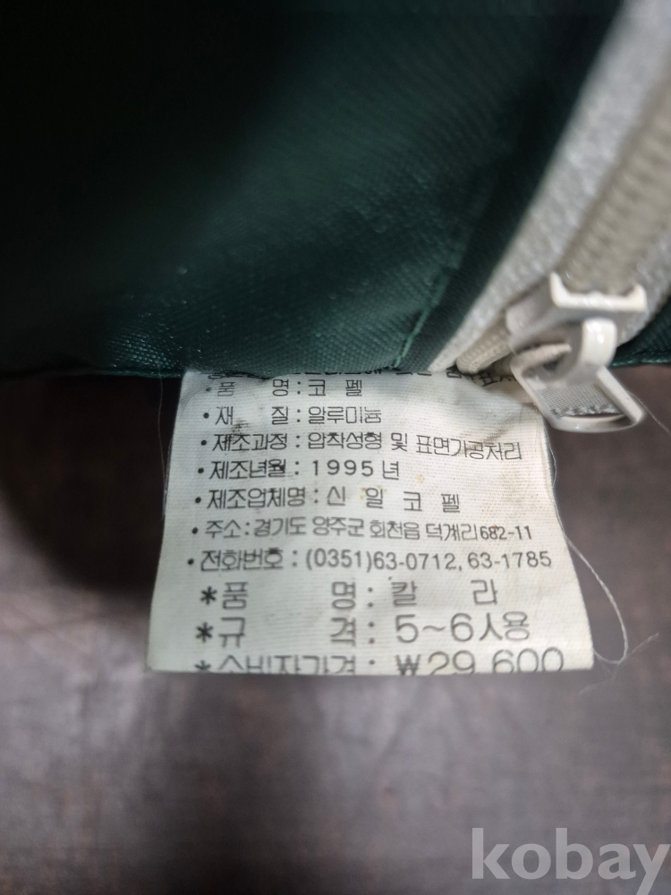 1995년 미도파 백화점에서 판매한 신일코펠 미사용품5-6인용 가격 29600원 24*24*16