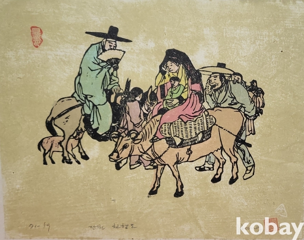 한국풍속판화로 1972년 한국판화 박물관에서 제작한 단원 김홍도 "천행도"목판화입니다,