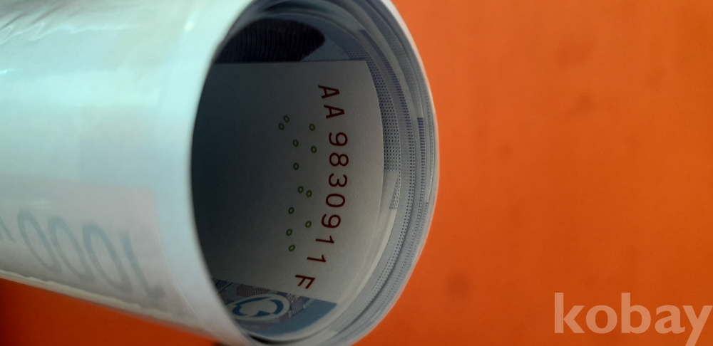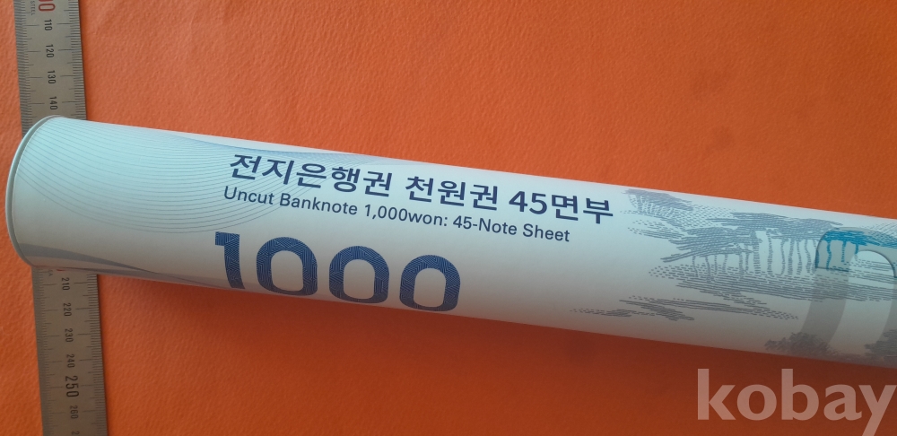 2021년 전지은행권 천원권 45면부 AA 9830911 F 부터 AA 9830955 F까지 입니다.