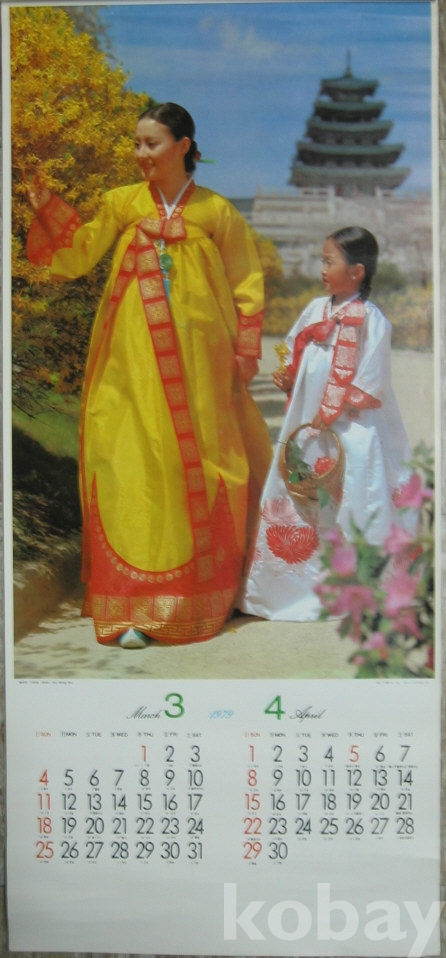 1979년 여성 탤랜트 모델 고궁과 미녀 벽걸이 달력
