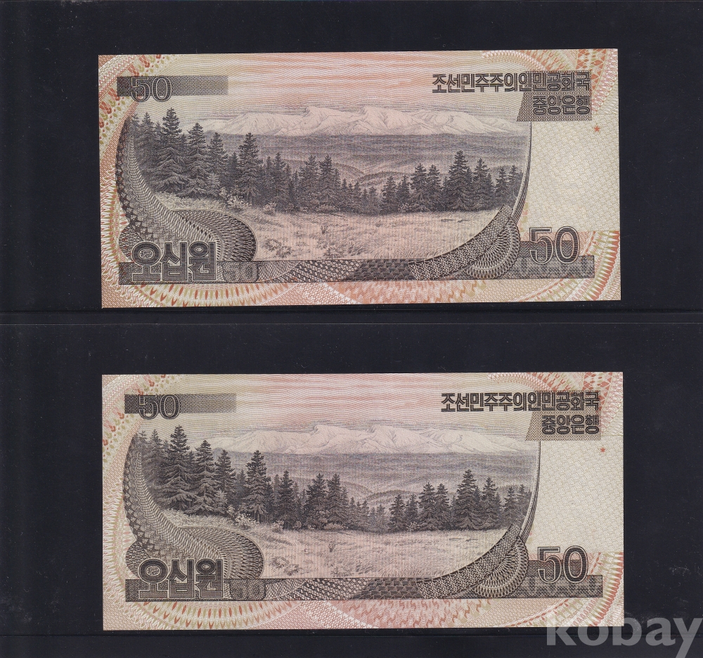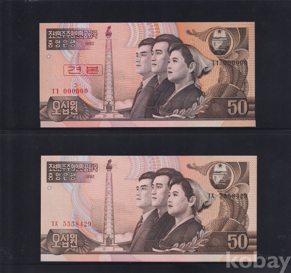 - 윗동네 1992년 오십원 000 견본 / 오십원 통용권 미사용 지폐 - 2장 일괄