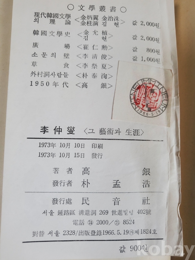 1. 이중섭 그 예술과 생애, 고은, 민음사, 1973년, 370쪽, 상태 상, 사진 참조
