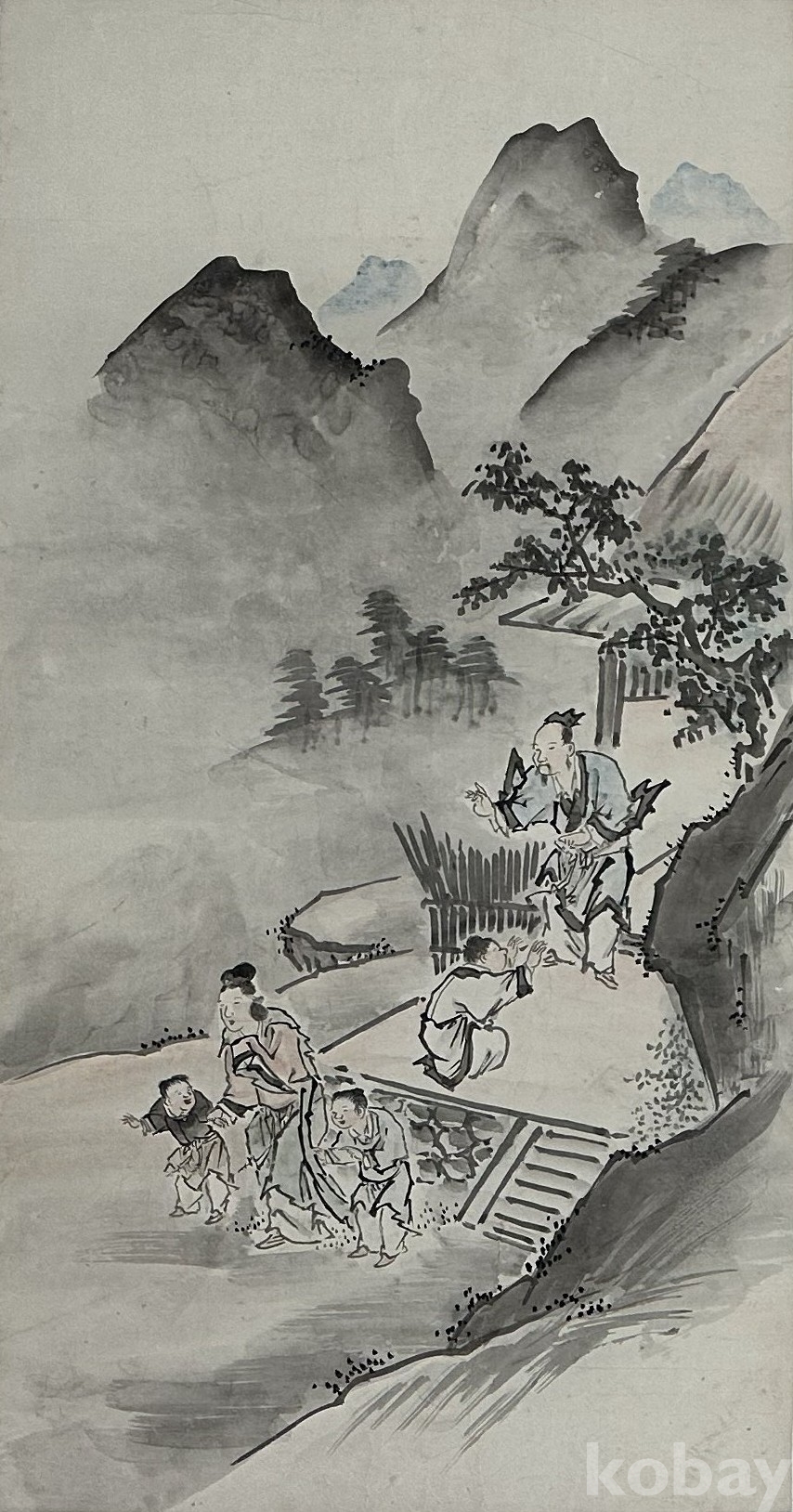 제목: 일본 수묵 풍속 인물화 연폭 4점 세트