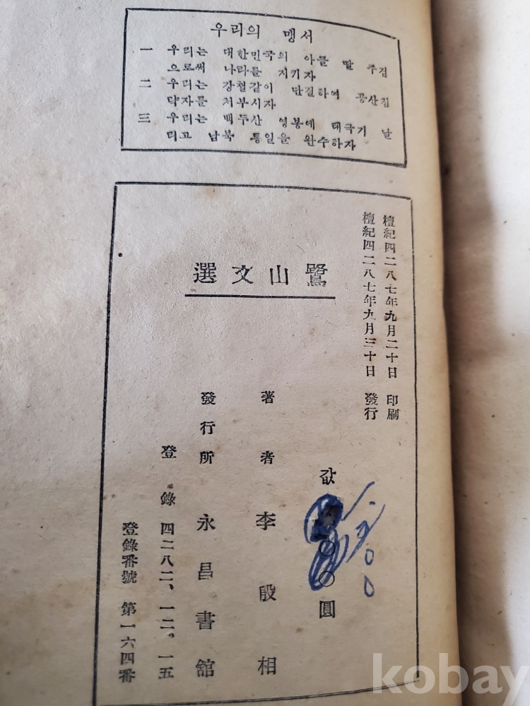 1. 노산문선, 이은상, 영창서관, 1954년, 551쪽, 상태 상, 사진 참조