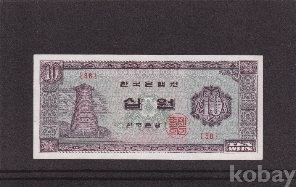 - 한국은행 첨성대 십원 무년도 판번호 98번 극미 (+)지폐