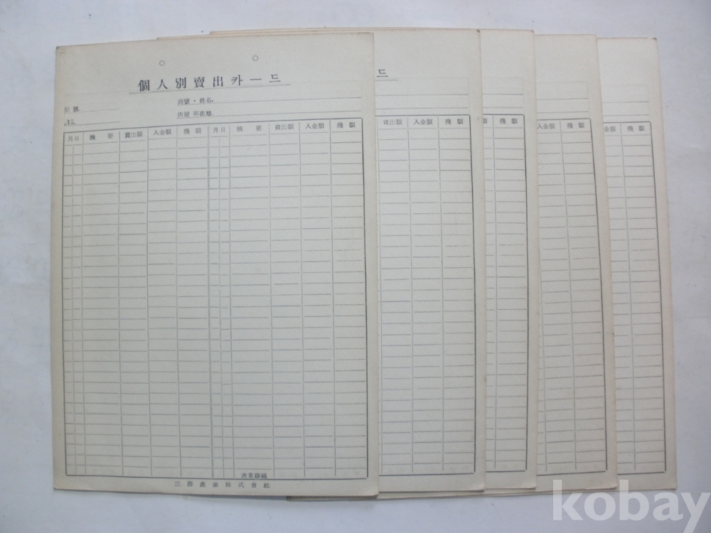 개인별 매출 카드 - 5매일괄 (삼정산업)