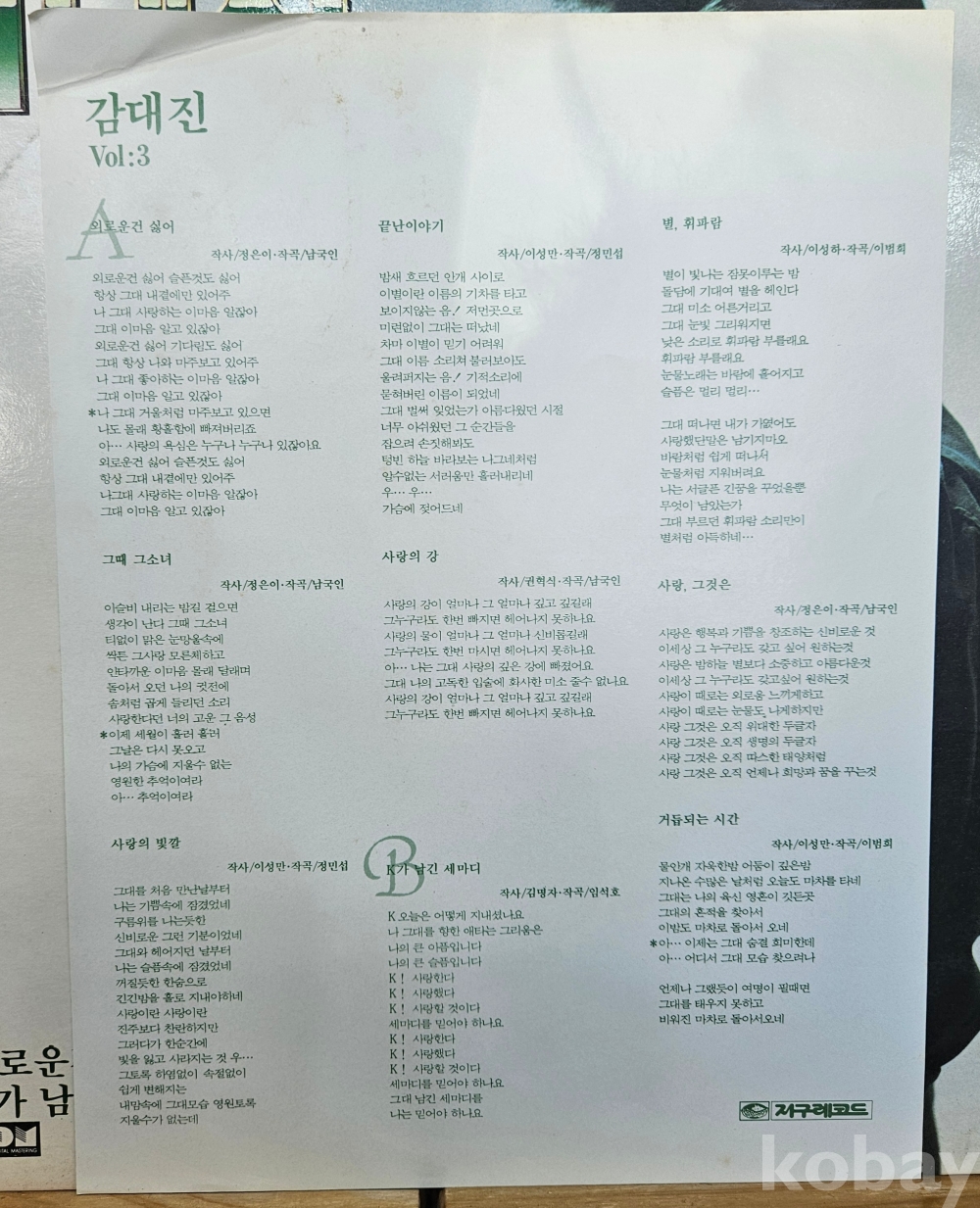 과거 인기곡이였던 [ 이선희 / 영 ] 작사가 [ 권혁식 ] 전설의 작곡가 故 남국인 콤비인 [ 사랑의강 ] 노래가 사랑받은 음반으로 희귀이며 상태도 좋습니다.
