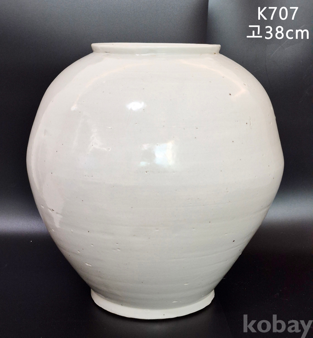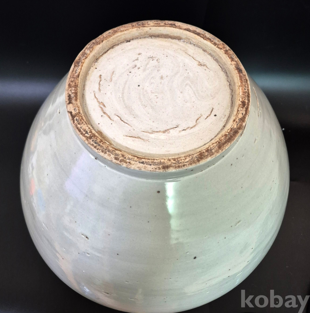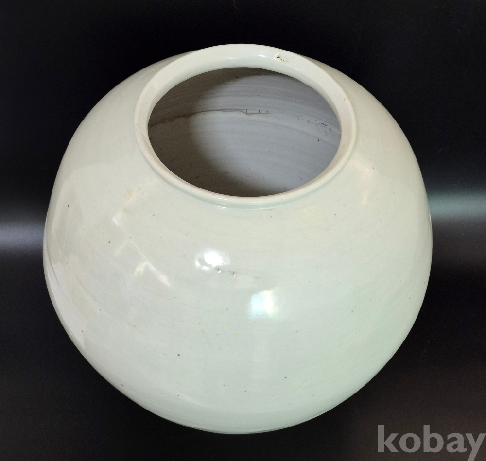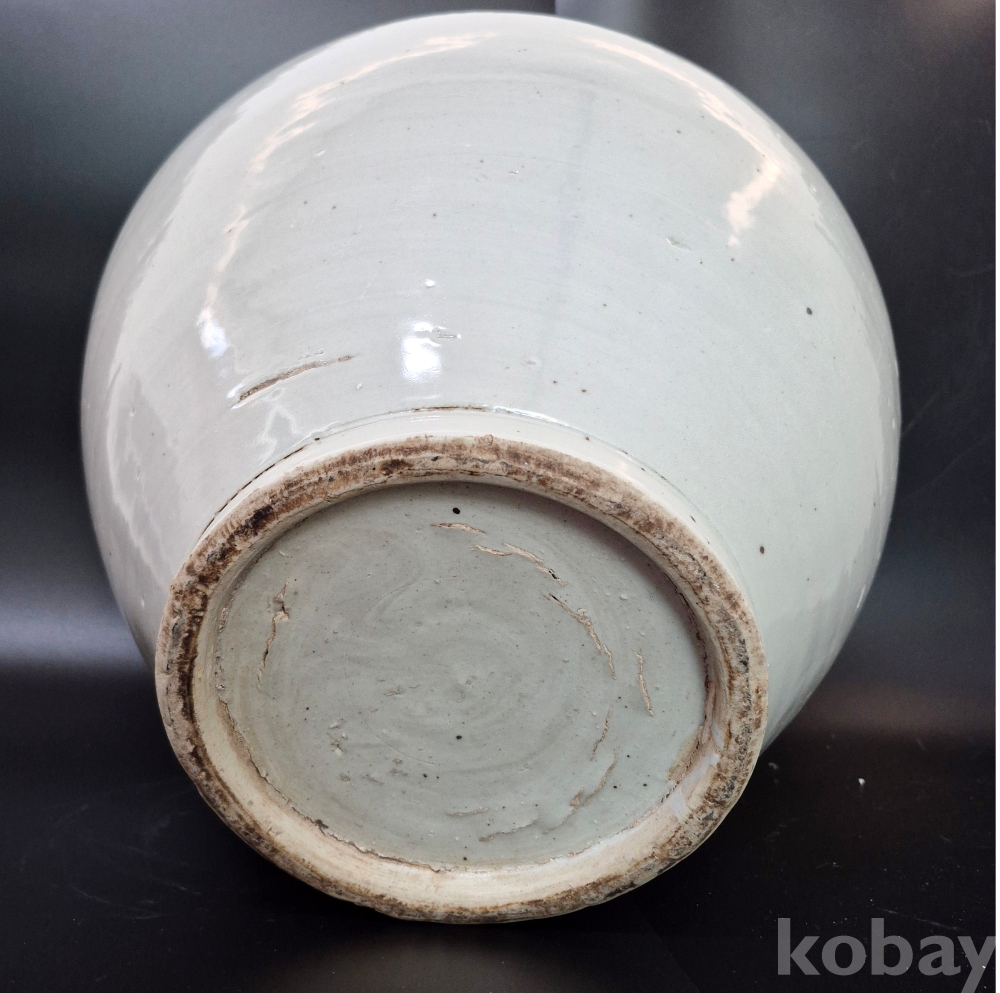 입구와 밑굽의 크기가 비슷한 우리 달항아리 표준 형의 조선의 백자대호로 흔하게 보이는 백자는 아닙니다.