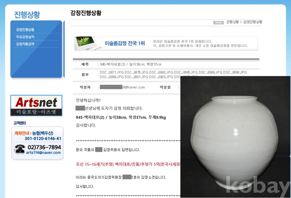 이정도 크기에다 10kg의 중후한 백자를 현대의 도예가가 만든 신작도 200만원 줘야 할 것인데, 코베이 경매제도에는 “숨은 최저가(Reserve Price)” 제도가 없고, 최소한 2명이 경쟁하지 않으면 5만원도 안되게 낙찰되는 비극이